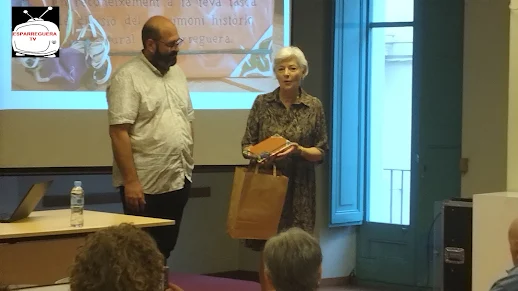 | A costal de l'Oriol Achón, la Maria Rosa Cuscó que ens parlaria de la part més humana de l'Andreu Sitjà en el primer parlament de la jornada. |
